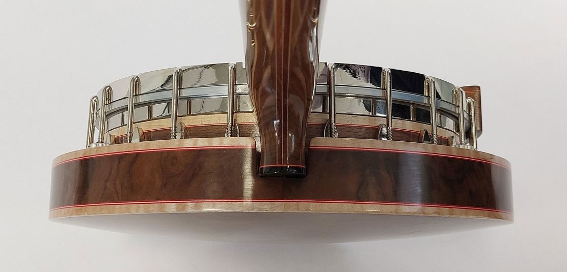 Initially, when I received my banjo, I knew I was holding a piece of artwork, the 5-piece neck and celtic designed pearl inlays were outstanding. I chose the 18 fret model which has added a sense of control to my playing with its easy reach to high B and excellent buzz free action. The Euphonic has good volume and sustain, balancing its overall tone, allowing notes to be powerful and expressive.