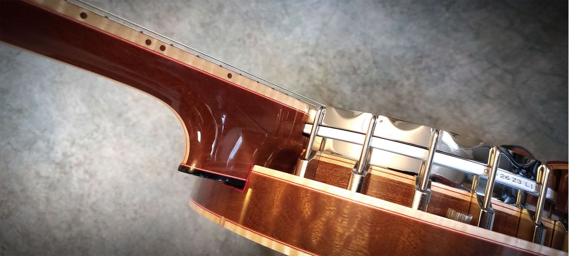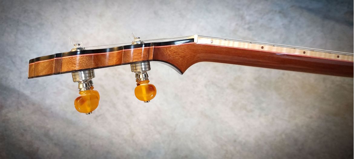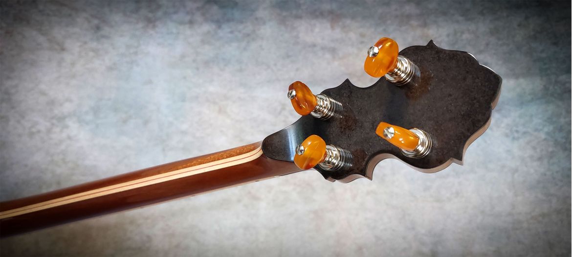 Elegantly hand crafted headstock shaped from the styles of the 1920’s vintage era banjos from the USA.